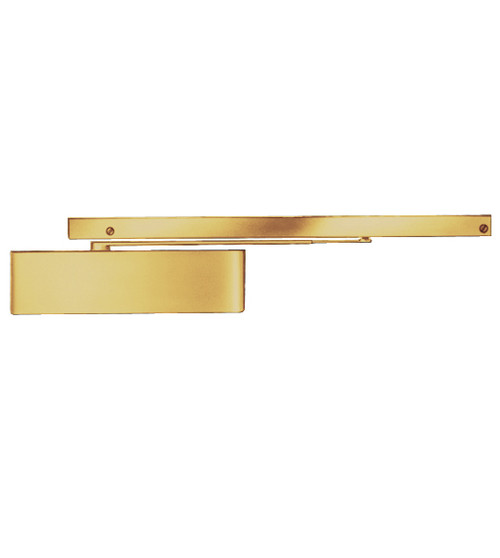 4040SE-LONG-120V-AC/DC-US3 LCN Single Point Hold Open Door Closer with Long Arm in Bright Brass Finish