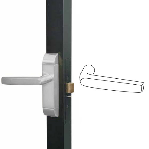 The 4600-MJ-541-US32 heavy duty designer Deadlatch handles are perfectly designed with a patented adjustable drive mechanism to operate the 2190, 2290 Interconnected Deadbolt or Deadlatch Locksets with either an upward or downward motion. Its drive mechanism also allows the escutcheon to be set back from the door edge at the time of installation to provide additional clearance to the unit.
