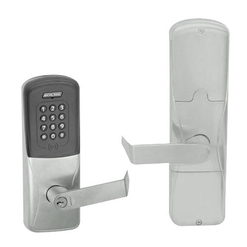 AD200-CY-70-MTK-RHO-RD-619 Schlage Standalone Cylindrical Classroom/Storeroom Multi-Technology Keypad Lock with Rhodes Lever Prepped for Everest FSIC in Satin Nickel Finish