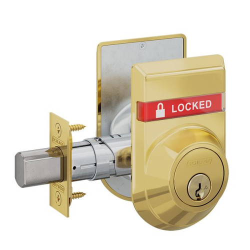 B660P-605-OS-LOC-IS-OCC Schlage Grade 1 Single Cylinder Deadbolt with Dual Indicator in Bright Brass Finish