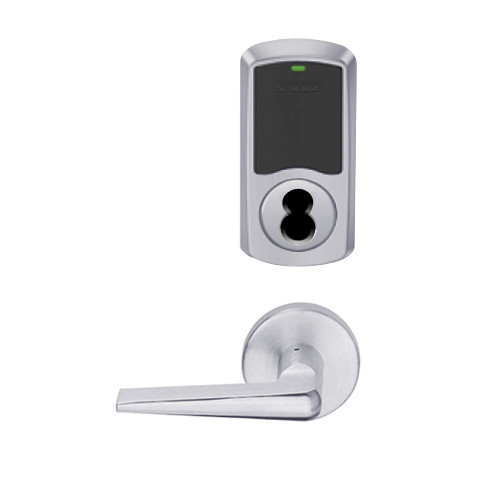 LEMB-GRW-BD-05-626-00A Schlage Privacy/Office Wireless Greenwich Mortise Lock with Push Button & LED Indicator and 05 Lever Prepped for SFIC in Satin Chrome Finish